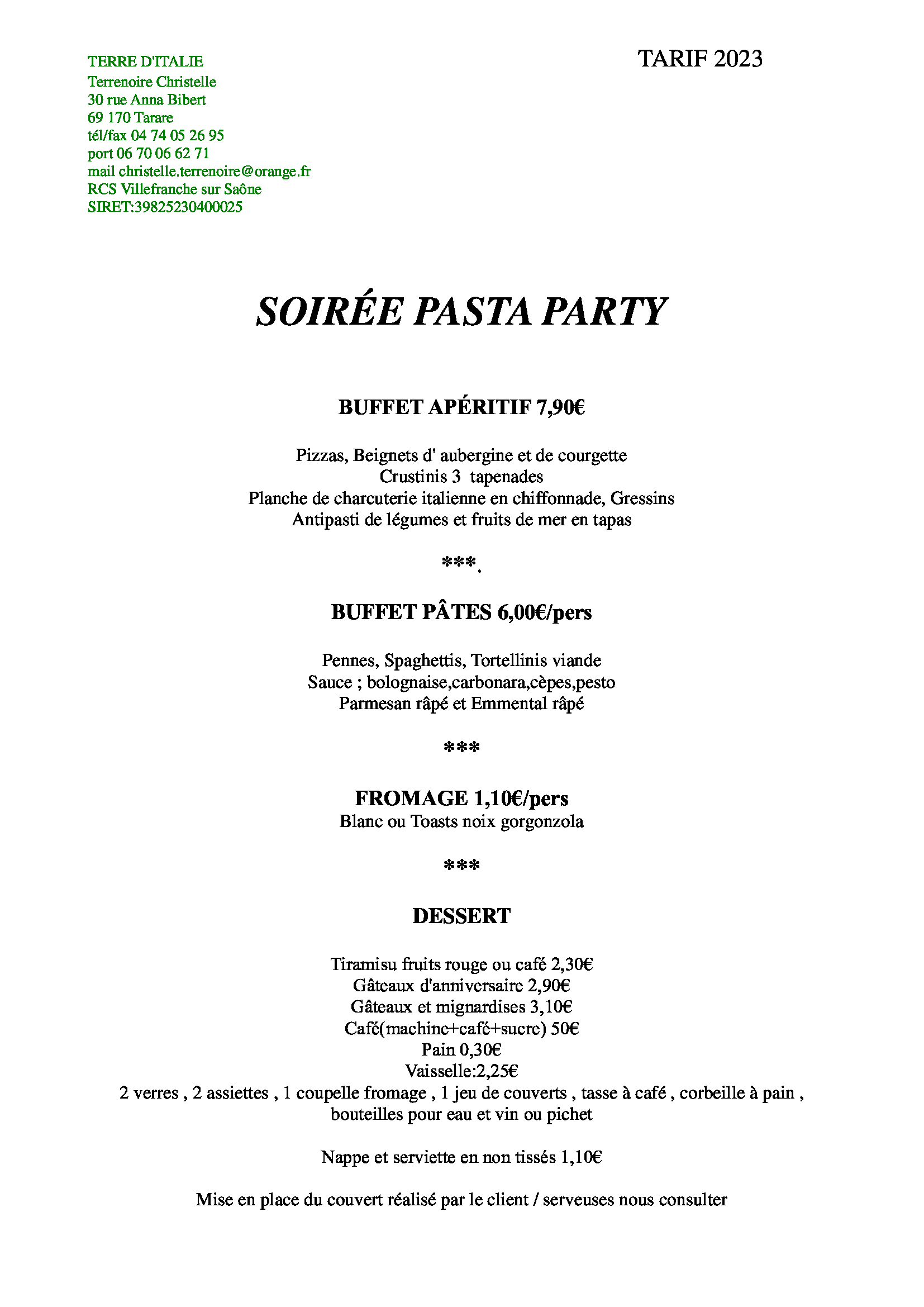 Traiteur à Tarare - Terre d'Italie 30 rue Anna Bibert 69170 © 2026
